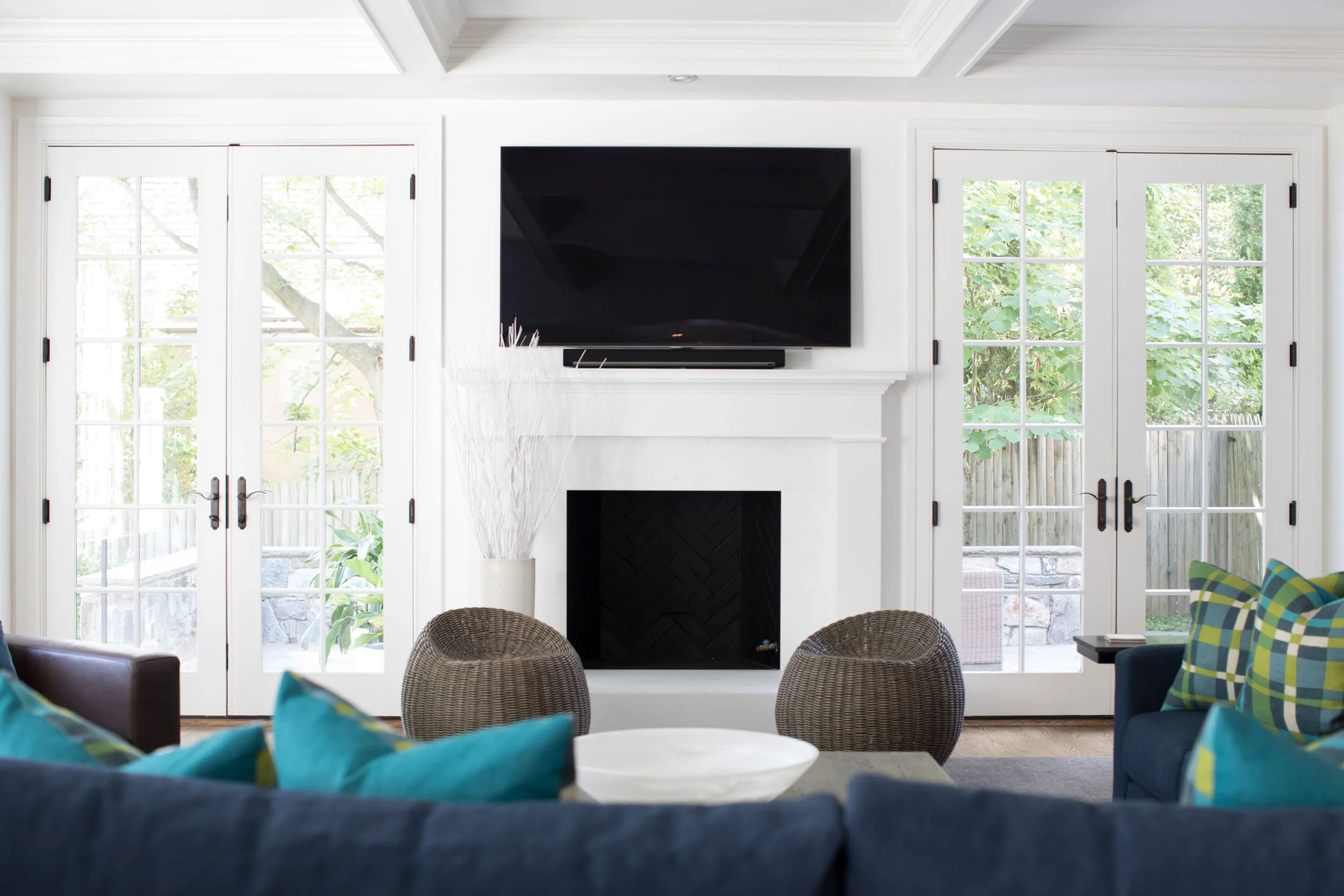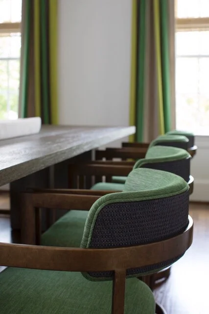 Lee was brought on to this project to help transform a traditional house into a more contemporary and welcoming home for a busy family of six. With cosmetic updates and a full dose of color, Lee completely furnished the home from top to bottom. Hues of blue and green led the color story starting at the front door. The goal was to create a functional space that was not shy of fun.
